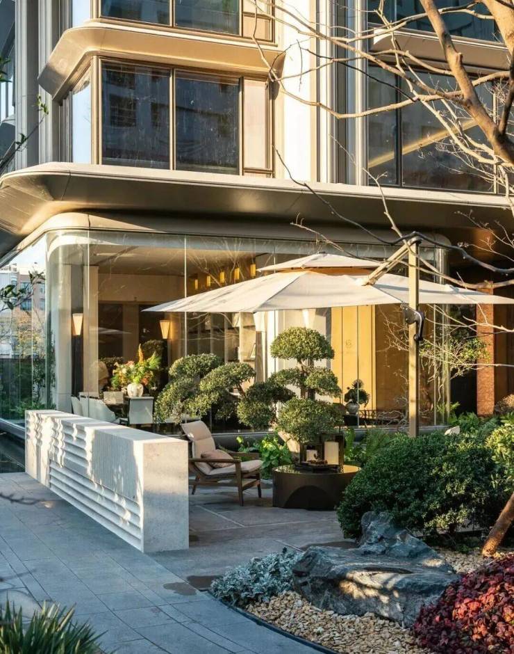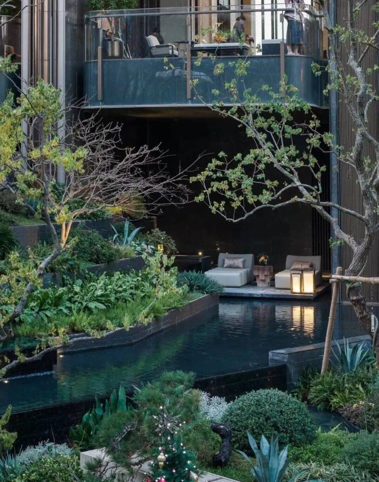 并参考世界度假酒店休憩区,在5号楼下打造一处极具松弛感的度假水院——【泊心逸境】,可在此独对山川,亦可与聆听溪谷潺潺之音。