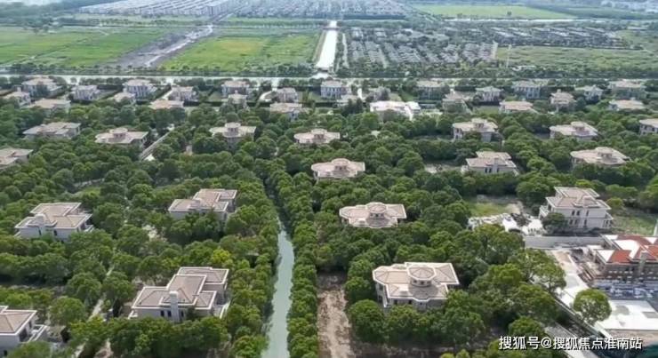 形成1个半岛+13个小岛的分布格局,还在公路旁种植具有观赏和隔音作用的树木,西侧的花墙长达一千米多,力求成为一个一面临山、四周环河、安然静谧的佘山别墅“世外桃源”。