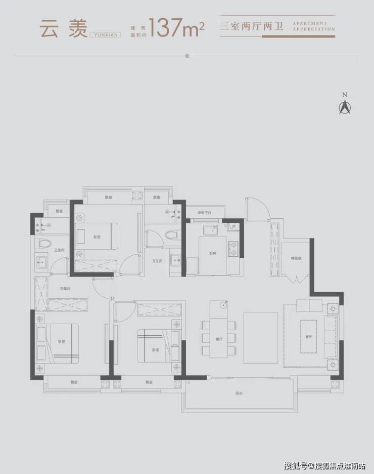 雅致三房:满足三口之家所需,北向房间可改造书房,理想生活一步到位