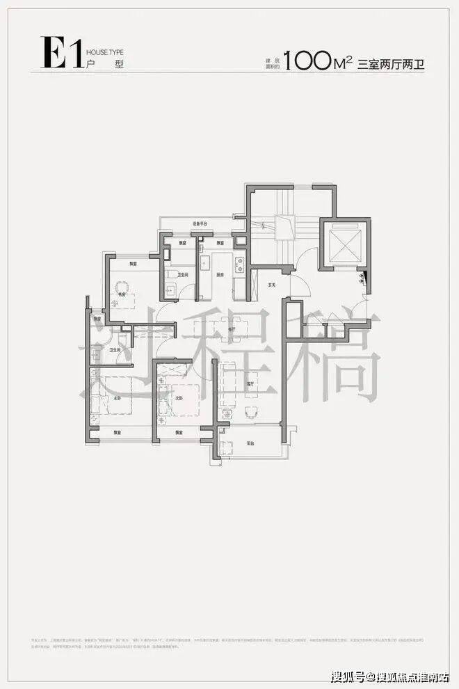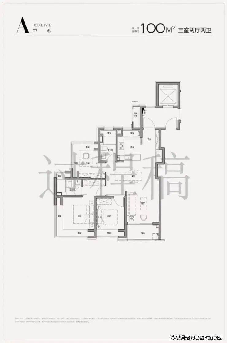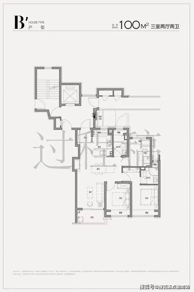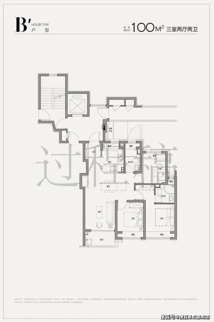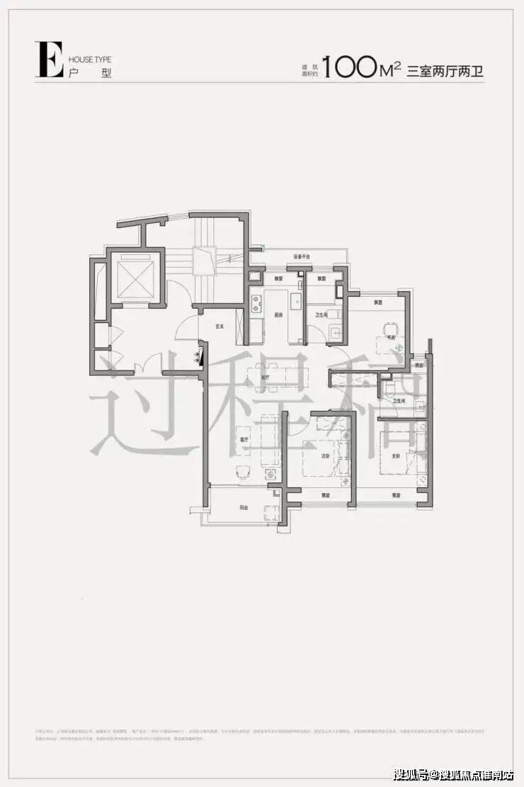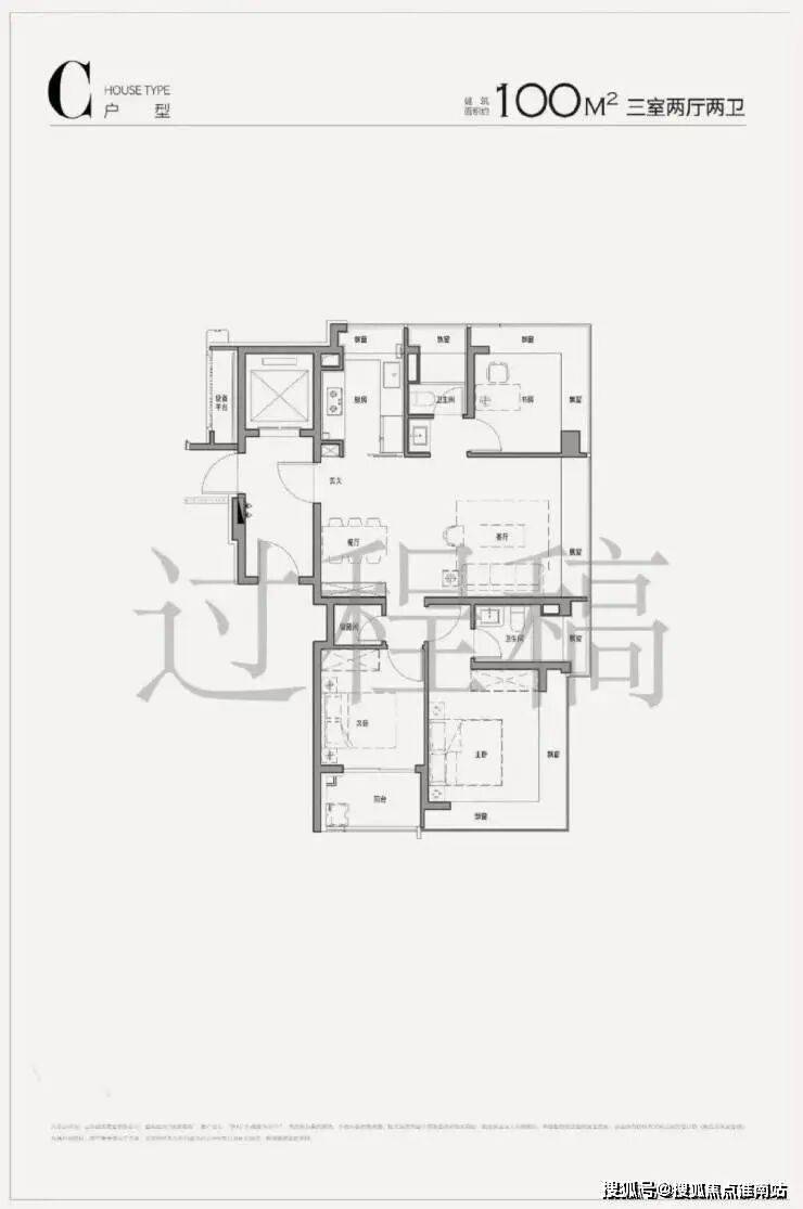 项目所有百平米户型都把传统过道融入到了客餐厅中,餐客厅更方正,面积比同级大约6㎡。