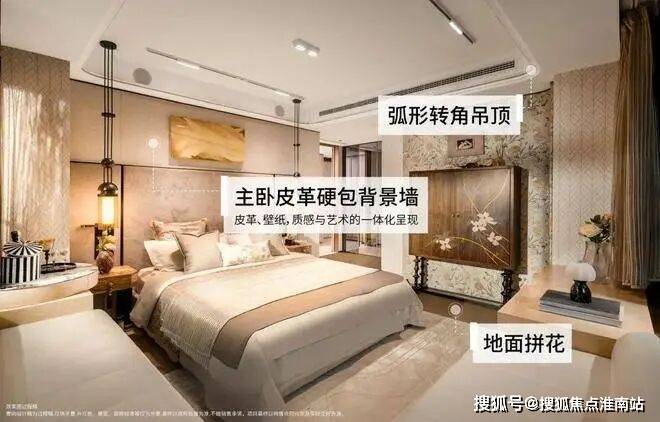 ✔设计巧思:吊顶用弧形转角搭配框体线条,打破平顶单调;卧室地面采用工艺复杂的柳叶拼花;柜体表面加立体线条、客厅背景墙做圆弧处理、主卧背景墙用皮革硬包,让每个功能空间都兼具设计感与氛围感。
