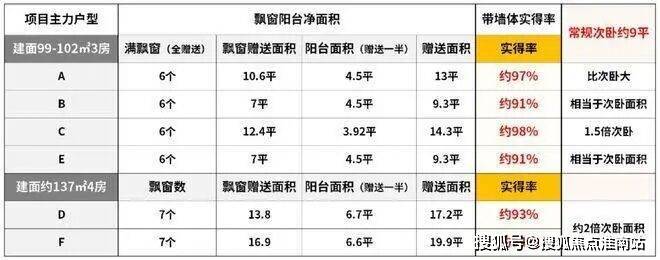 99-103㎡三房:三开间朝南,全屋六飘窗,实得率约91%