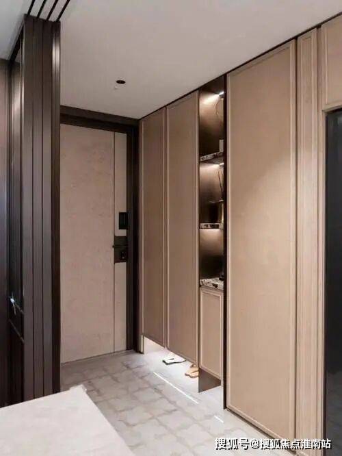 项目137㎡户型进门做了一整排收纳柜,分类科学到让每一件物品都能精准归位。