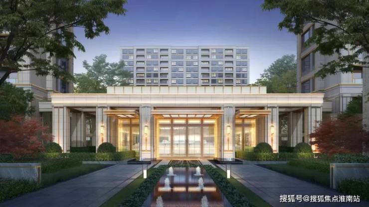 入口中轴对称式的前厅水景,两侧阵列由榉树围合组成,不仅拥有“门前中举”的美好寓意,也让入口的仪式感拉满,与灵动的喷泉水景交相辉映,形成具有东方礼序的归家体验。