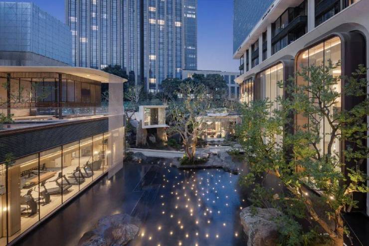 以豫园为蓝本,勾勒罕见的约15米纵深景观面,为平川处的上海,搬来一座立体山水。从五感出发,以城市山林为灵感,打造自然九意。