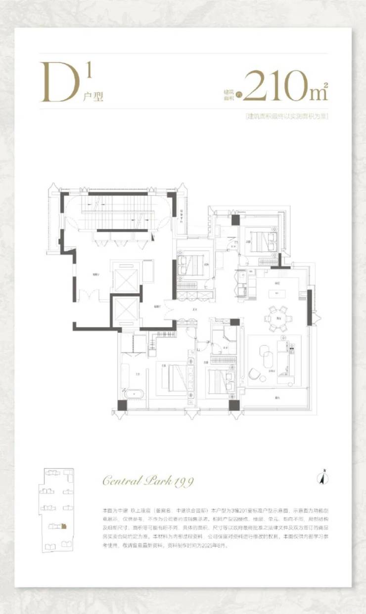 210㎡四房:边厅设计,东南双向采光,可俯瞰中央庭院与大宁公园
