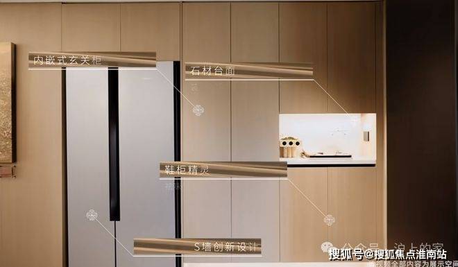 入户后,第一眼就可以看到玄关柜采用石材台面,下至标配鞋柜精灵,在S墙创新设计后,首批次房源更是额外赠送西门子双开门冰箱,这在以往可是上海千万级新房的交付标准: