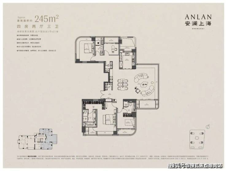 而安澜上海打造罕见的大面宽、短进深格局,四面宽让采光面最大化铺开.更难得的是三房朝南,让每个家庭成员都能平等享有阳光与舒适.