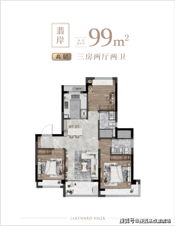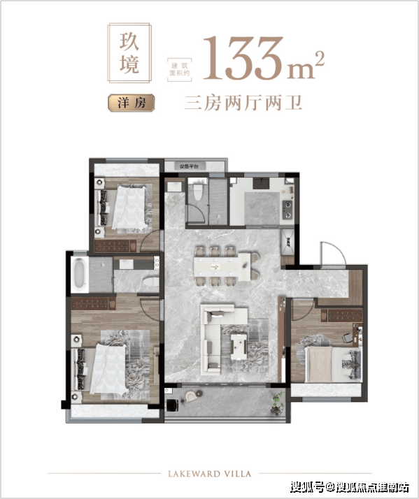 主力户型为120-140㎡的三房两厅,配备独立厨房、开放式客厅及大阳台,满足家庭日常需求。部分户型还设计了书房或亲子房,提升居住舒适度。