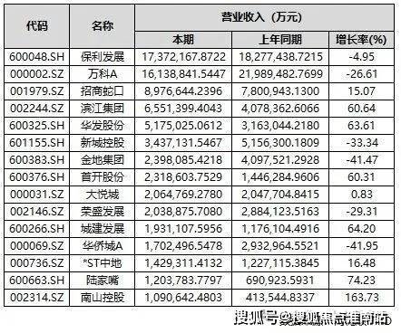 25家房企实现营收和归母净利润双增