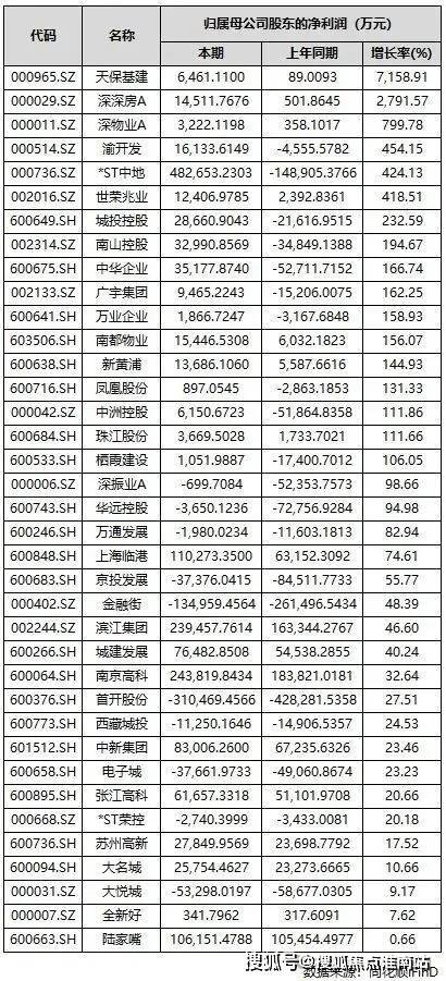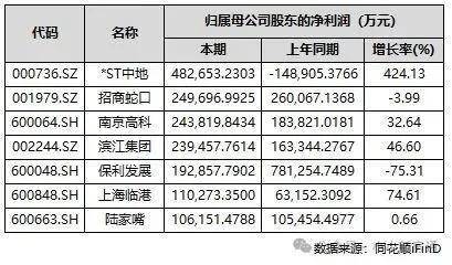 有37家房企实现归母净利润实现同比正增长。其中,天保基建、深深房A、深物业A、渝开发、*ST中地、世荣兆业、城投控股、南山控股、中华企业、广宇集团、万业企业、南都物业、新黄浦、凤凰股份、中洲控股、珠江股份、栖霞建设17家房企前三季度的归母净利润增长超过100%。