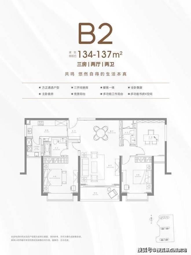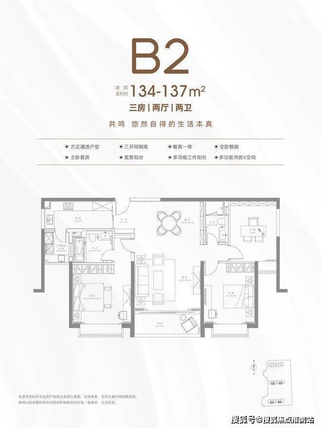 古北99营销中心热线400-8815-114(预约看房热线)建面约134-137㎡三房两厅两卫:双卧朝南,连厨房都有南向采光;客厅面宽同约 4.5米客厅面宽+约4米主卧面宽,开间尺度阔绰;还有灵动空间随心调配。