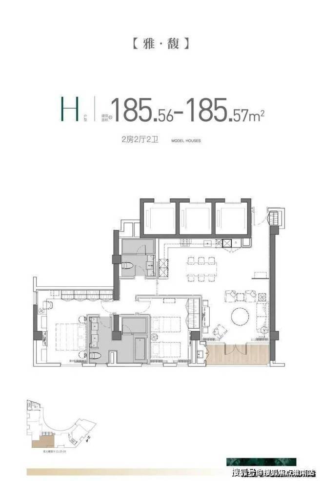 主力户型为建面约110.12㎡、建面约172.05㎡、建面约185.56㎡: