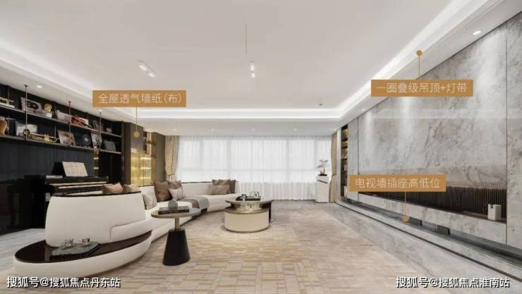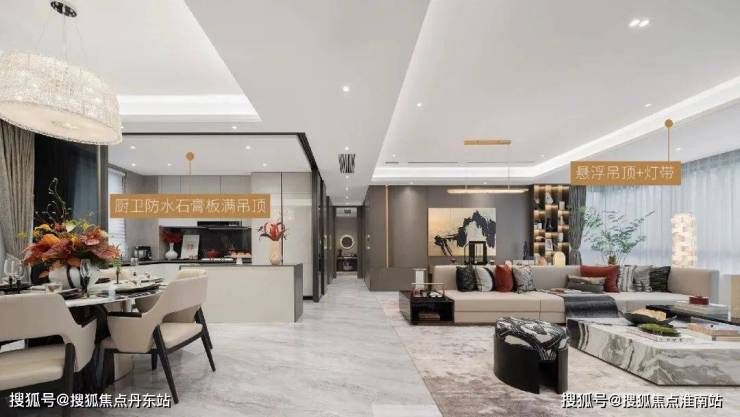 四合一风暖浴霸、厨房嵌入式凉霸,节省空间的同时尽享舒适;厨卫防水石膏板满吊顶、一圈叠级吊顶+灯带、悬浮吊顶+灯带、窗帘盒灯带,不仅美观,也实现均匀舒适的线性照明效果,让居室尽显宽敞明亮。