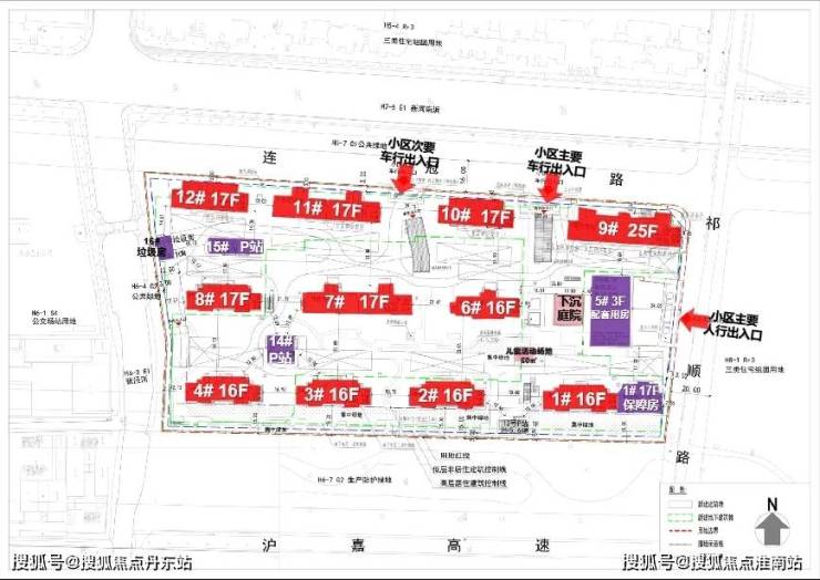 根据项目设计方案显示,拟建11栋16-25层高层住宅。其中1号楼靠近17层的保障房,5号口为3层的配套用房,14#、15#为P站,16#为垃圾用房。
