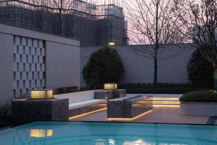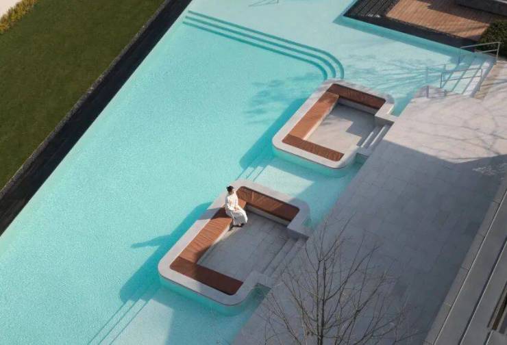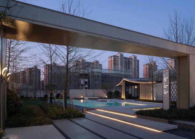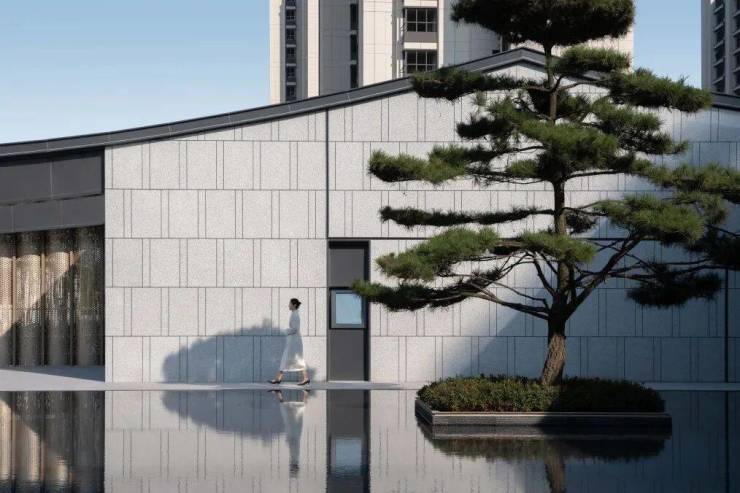 湖滨铂悦花园 ·生活美学馆,其景观艺术追求纯粹、简约、灵动的美学调性,这与建筑简洁、轻盈、留白的设计手法相呼应和统一。空间布局上以水为线索,通过现代手法重塑诗意江南的肌理与格局,剥离喧嚣,追求幸宁静祥和、幸福静谧之美。