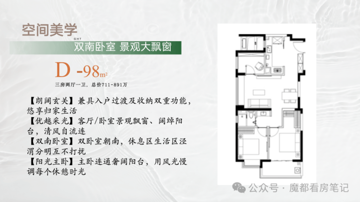 总价:580万起-960万,2房约580-700万,3房约800-960万