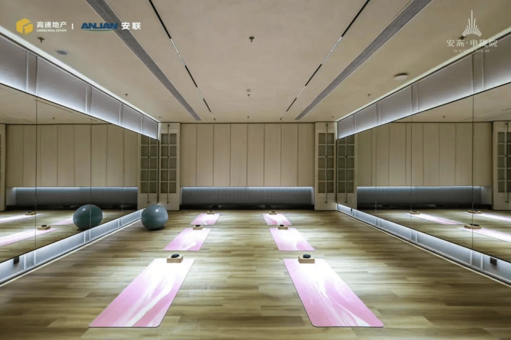 会所配有瑜伽室,与庭院美景相互渗透,在健身的过程中享受更多的惬意,lululemon的品牌瑜伽垫符合当下年轻女业主的喜好潮流。