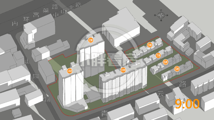 经过建筑设计师测算,项目首开的1-B楼南面几无遮挡,春夏日照拉满,即使是冬至时分也几乎所有楼层所有房源都有5个小时的日照(内环内大部分小区冬至日照时长2-3个小时),真正的城心“阳光房”。