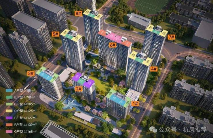 【规划优】 :由8幢16-26F的高层建筑围合而成, 最大楼间距超80米 ,每一栋都有充足采光和景观视野。