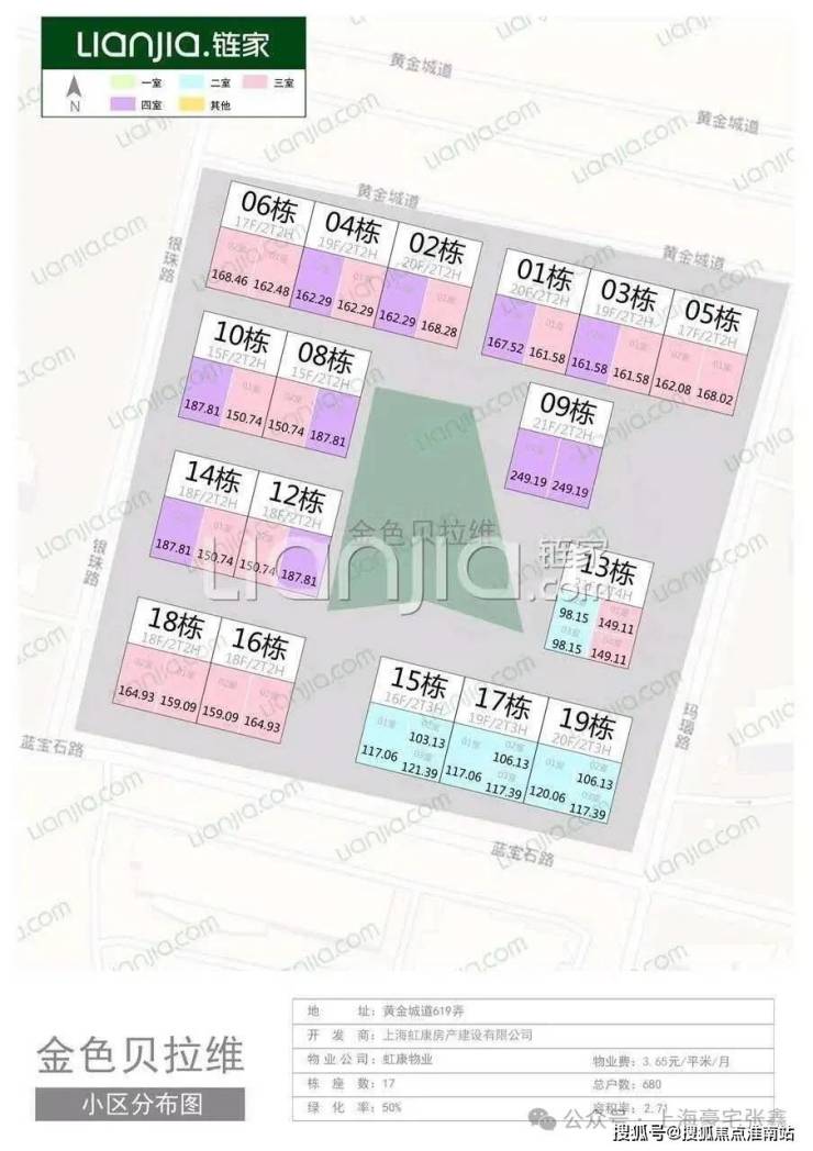 「金色贝拉维」由上海虹康房地产(国资委)倾力打造,于2007年建成。共17个单元,合计684户。户型以2-4房为主,建筑面积在98-249㎡左右,客户是群体多以改善型为主。