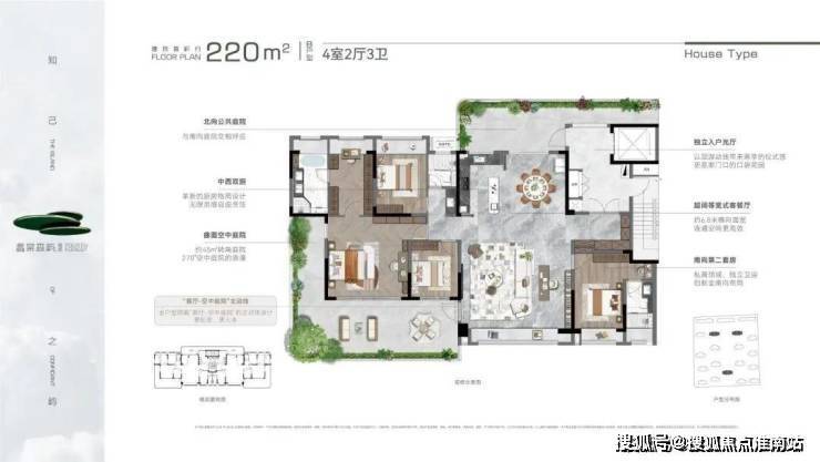 产品规划:建面约150㎡、185㎡、220㎡,户均约30-50㎡空中庭院