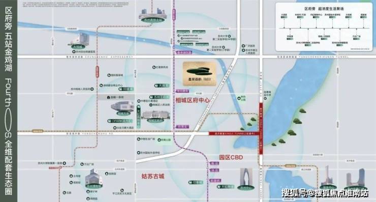 依托相城主城天然的地理优势,以环线快速路、隧道、地铁等立体交通主动脉为引擎,构建出相城区府中心、园区金鸡湖商务区、姑苏古城三大CBD交汇的“中心”坐标,并将全域高端资源纳入FourthOS.四代生态系统。