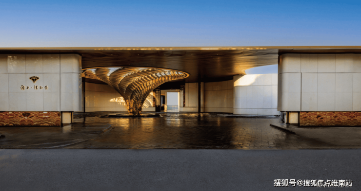 在门庭外,辅以两侧具有仪式感的跳泉水景,将建筑的圆弧美感与自然水景相合,共同构成海上·清和玺“贵雅清和”的城市界面。