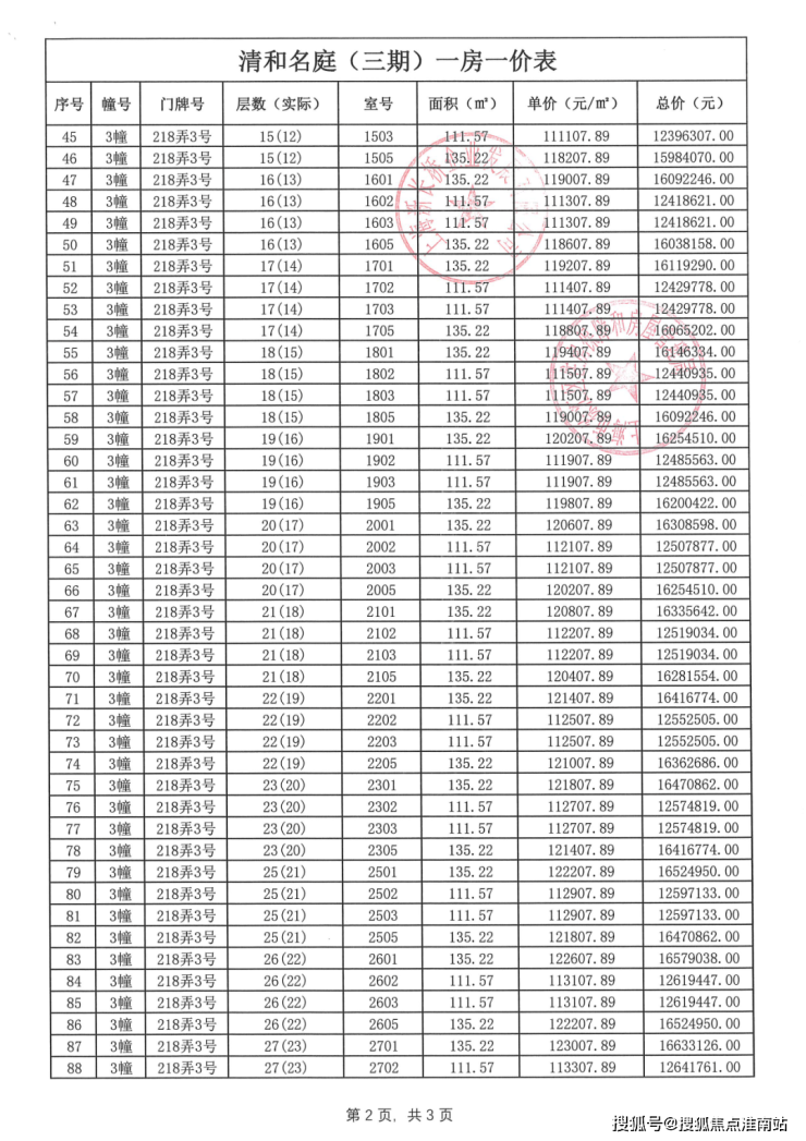项目一房一价表▼
