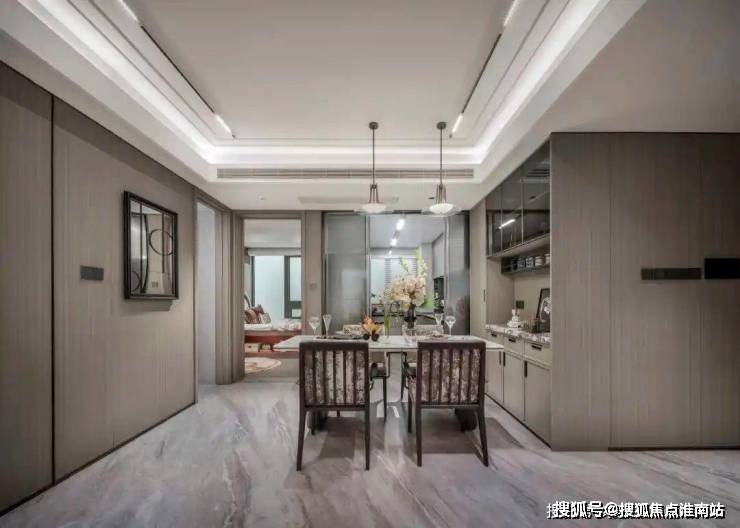 餐边柜配上玄关柜同款雪山飞狐奢石;配上1m8餐桌空间也绰绰有余。