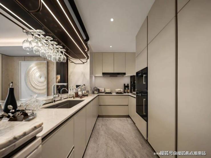 采用怡口直饮水、铂浪高水槽及龙头,水槽口内嵌厨余粉碎机,内里使用硬度堪比钻石的石英石材质。