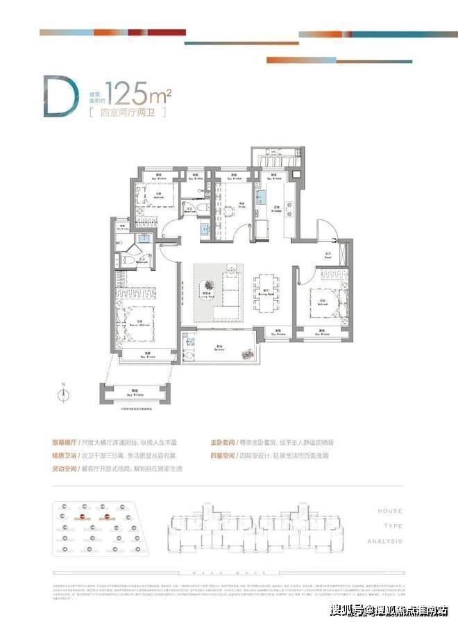 建面约125㎡4房:四开间朝南搭配一个巨幕横厅,让室内尺度与采光都达到了极致,更重要的是该户型主力总价仅约600万级,首付仅约120万起!