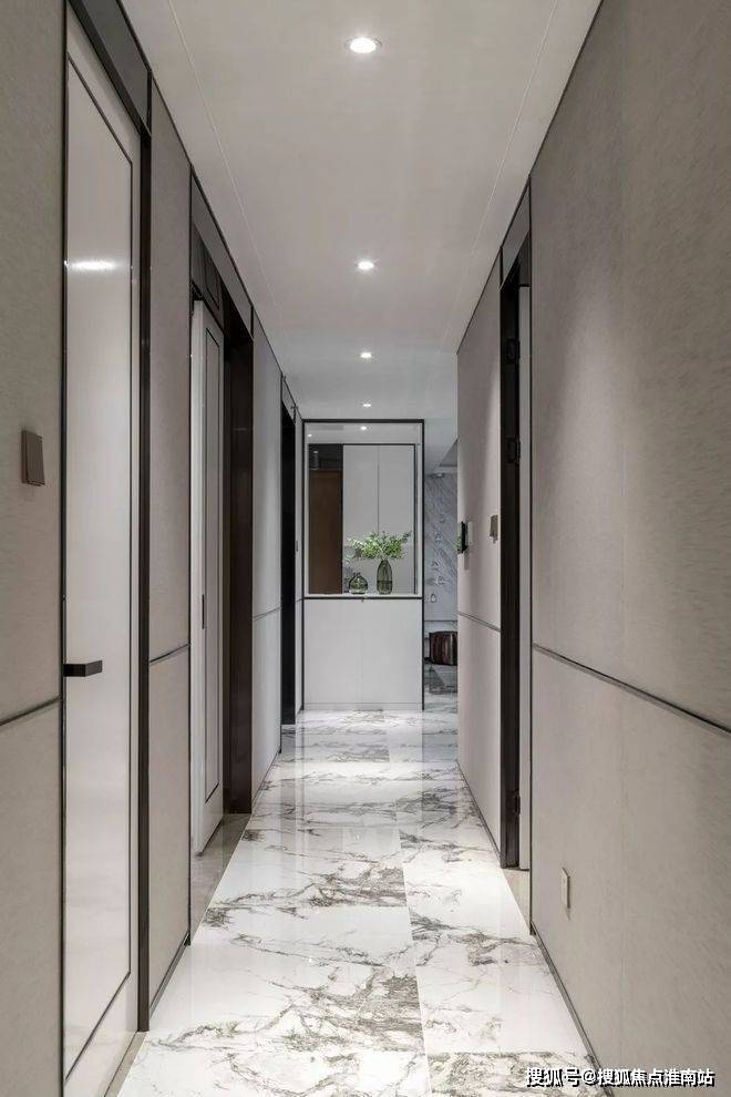 杭州大平层·揽奥云璟售楼处电话☎:400-881-8994(预约看房热线)透过鞋柜看向过道,门全部做了到顶的处理,中间的腰线在公共开放区域是整体贯穿的元素,并结合柜门的开启高度,硬包的中线高度等等做了一个整体的联系。