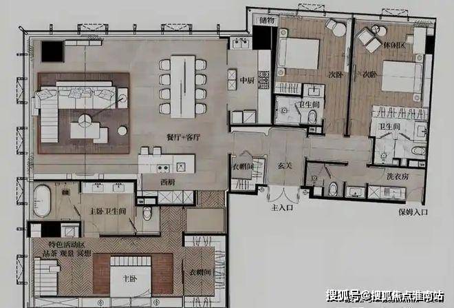 杭州大平层·揽奥云璟售楼处电话☎:400-881-8994(预约看房热线)开放式的客餐厅设计,吊顶侧边一些细节的处理与柜子的钢条和大理石的分缝有一些联系,整体立面的横向缝隙的高度都有一些相应的联系,让空间的感受更为整体并且相互之间有一些联系。