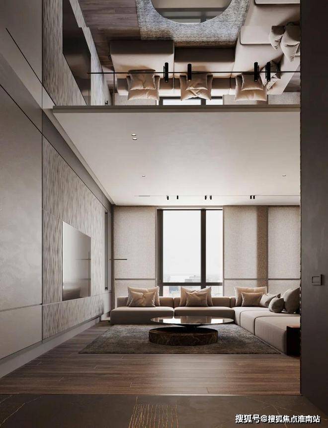 深色的玄关加上深灰色的墙面,让整个空间变得神秘又迷人。暗黄色的灯光给整个空间带来一丝神秘,客厅的视野完全被落地窗全部打开,整个空间显得通透大气。