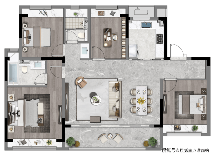对于业主来说,这样的格局更加灵活,享受到四房的同时,也能很好控制住总价,性价比肉眼可见。