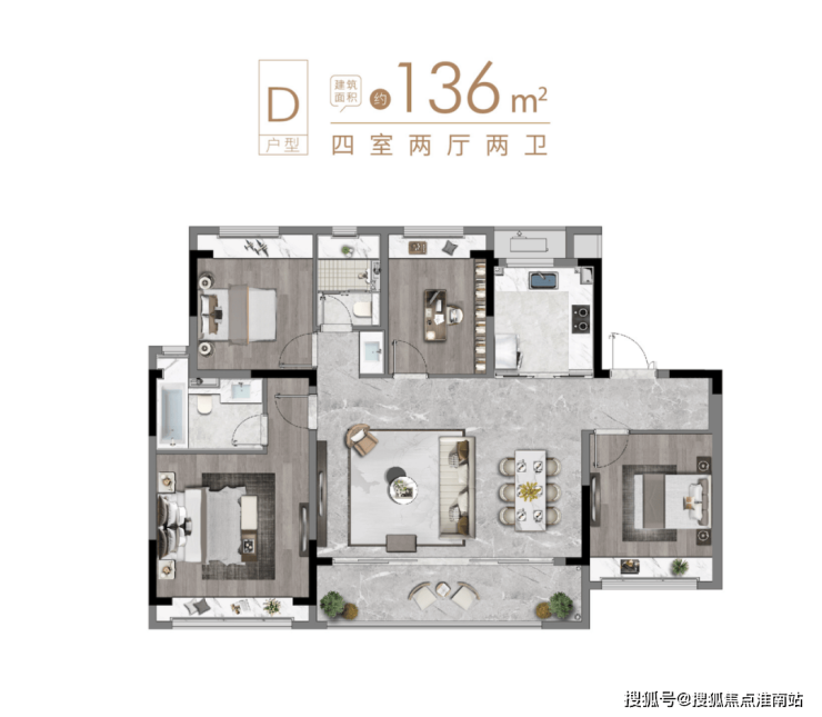 另一个136平户型也是同样精彩!大横厅的尺度感,不输150+大平层👇