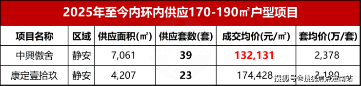 ②约180㎡三房:万科中兴傲舍售楼处电话☎:400-998-9694 总价约2300万起,在内环同总价段里几乎买不到同尺度的新房产品。这个从2025年至今内环内新房供应就可见一斑!以170-190㎡这个面积段来看,仅供应了62套新房,其中39套还是中興傲舍的供应量!而且是唯一的三房户型!