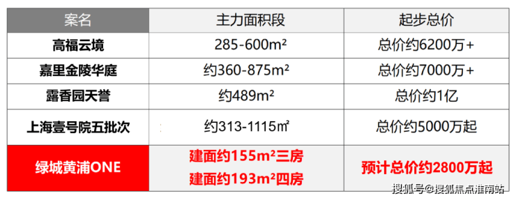 绿城黄浦ONE,将推建面约155-193m²产品,预计总价约2600万起,项目仅有112套,户型也是非常的不错!全部飞机户型,南北通透!错过再无!