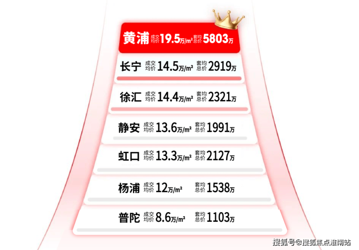 而相比这些区域,地段更加核心、圈层更加统一、资源更高能级的黄浦区中部,则将是20万/㎡+的市场