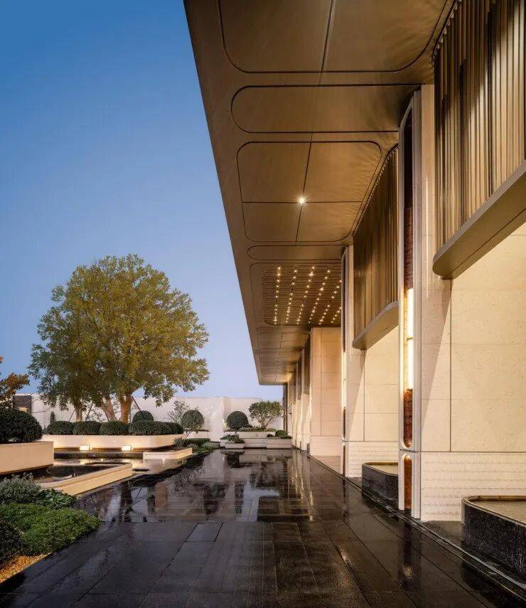 当然,高奢材质与美学营造并非局限于室内,更延伸至社区公区的每一处细节。