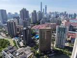 整个潮映望月府的总建面约9.3万㎡,容积率约2.3,由8幢16-26F的高层建筑围合而成。