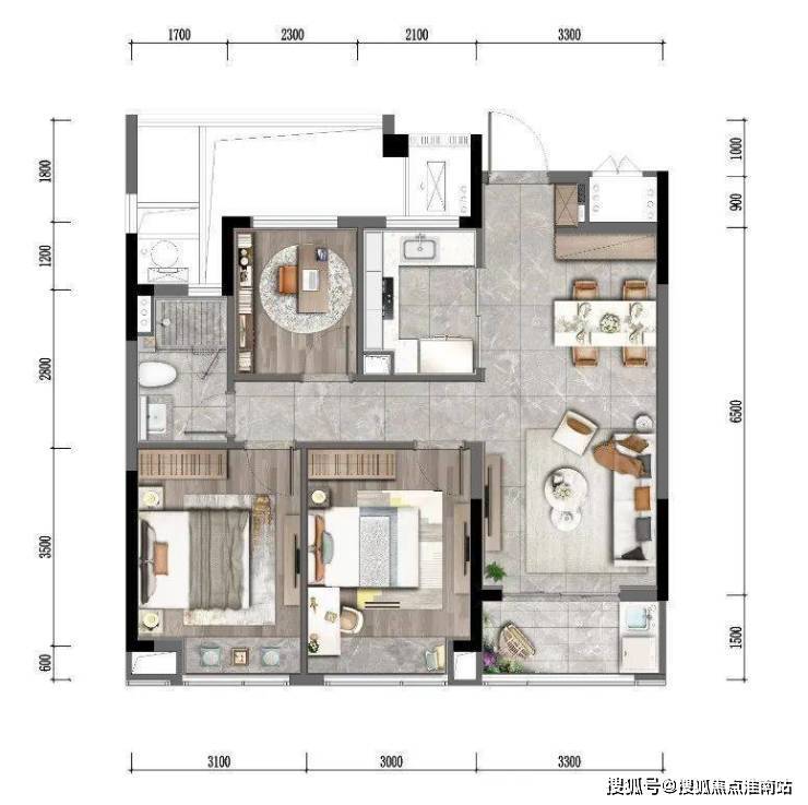 最让人感动的是,在如今这个“刚需边缘化”的时代,潮映望月府还打造了一批珍贵的建面约85㎡户型。
