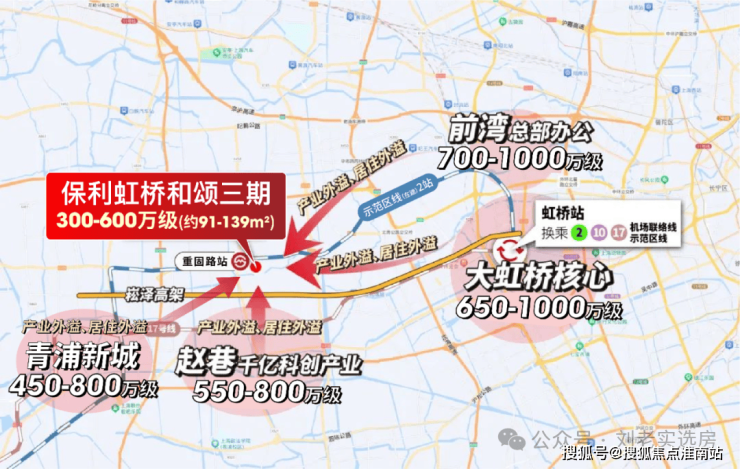 由此可见,示范区线沿线连接着华为、前湾、大虹桥、临空、中山公园、市中心、张江、华泾等一众超强产业区。保利虹桥和颂三期凭借地铁房的优势及价格红利,必将成为这些产业区人才置业的热门之选。