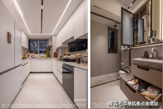 设计深度贴合日常需求,让精装不止于“豪”更在于“舒”。厨房采用 人体工学高低台布局,烹饪区低于水槽区,契合手臂自然下垂的舒适角度,让烹饪动作行云流水,大幅减轻家务疲劳。更精准捕捉女性需求,卫生间专门配备 科勒美妆龙头、美 妆镜柜、美妆冰箱,搭配“顶+面双补光照明”,将“女本位”关怀落到细节,这般细致在同类项目中实属难得。