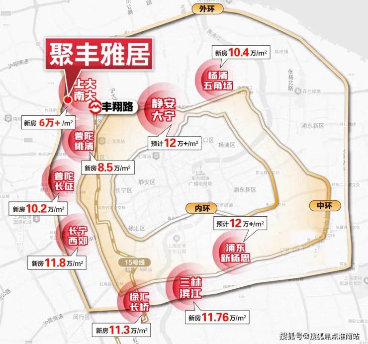 「聚丰雅居」,约600米步行直抵15号线丰翔路站,是区域内少数几个步行可达地铁的新盘!30分钟贯通长风商务圈动脉;约1.2公里接驳7号线上海大学站,静安寺商圈繁华举步即达。