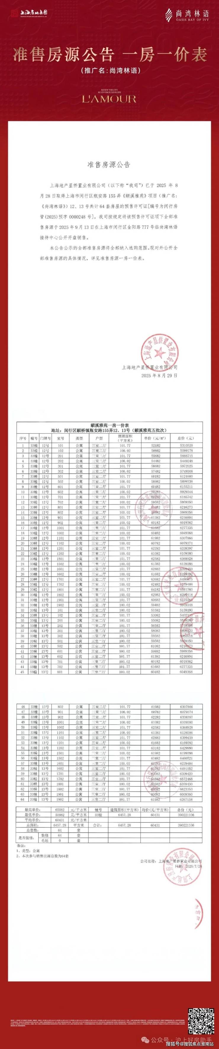 【尚湾林语】户型面积段为建面约81-149㎡的2-4房,其中精装三房的主力总价仅约500-600万级,可直接认购。本次加推132套房源,均价59327元/㎡!正在认购中!