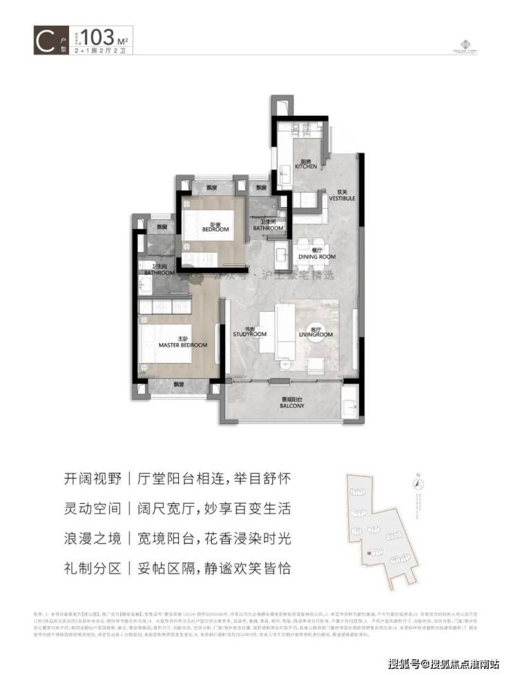 其中,建面约98㎡爆款户型,餐客厅一体化,连贯阔朗阳台,融合多维生活场景,实用性极强;双卧空间较为均衡,酒店式主卧带独立卫浴、观景飘窗;次卧空间宽适,可定制各类功能,适合单身、新婚、小太阳各家庭阶段……相比同面积段户型,以更舒适的空间尺度提升居住体验。