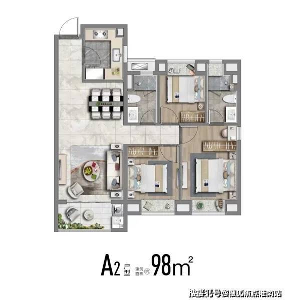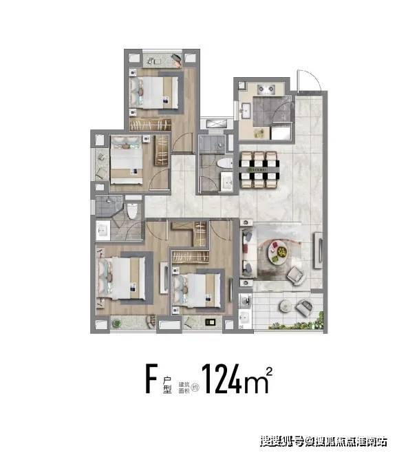 建面约124m²四房,市面常见的四房普遍要135平,这个约124平米户型功能性拉满,且控制了总价,给予更多小伙伴一步到位的机会。