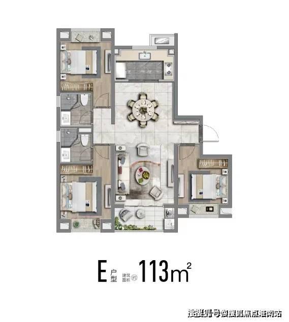 也有建面约113m²舒适性三房,南北通透;飞机户型,房间分列两侧互不打扰;卧室空间也相对更大、更舒适。